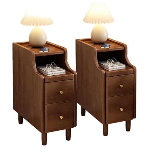 AQIMUELE Small Bedside Table, Narrow Bedside Cabinet with 2 Drawers, Slim Bedside Table for Bedroom, 30cm (Walnut)