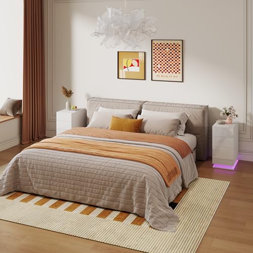 DEOPXF Nightstand With Drawers Convenient Storage And Space Saving Raise The Fence Rounded Corners Side Table Bedside Table Dustproof And Easy To Clean(Warm White Single-Drawer 30CM)