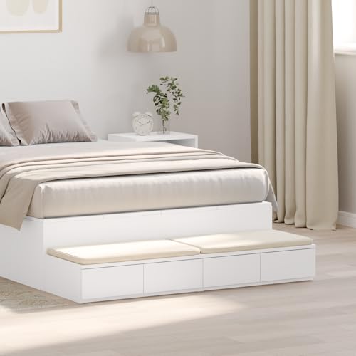 HaoChrymec White Bedside Table with 4 Drawers, Modern Nightstand with Storage, Engineered Wood Bedside Cabinet for Bedroom, Minimalist White Furniture, 120x36.5x16.5 cm