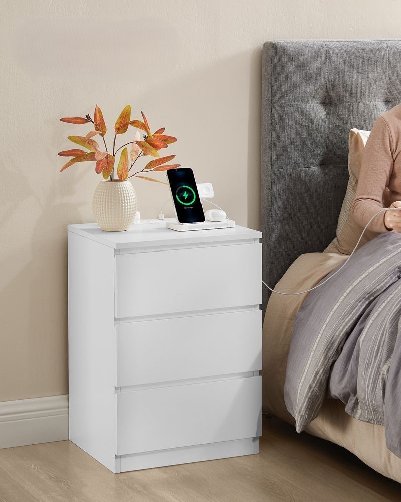 2Piece Bedside Table Drawers Charging Station Outlets USB Ports Extension Cord