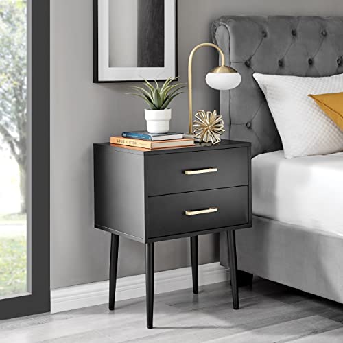 Furniturebox UK Taylor Black and Gold Handle 2 Drawer Storage Tapered Leg Bedroom Nightstand Bedside Table