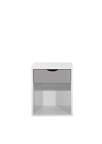 Timber Art Design UK Lisbon 1 Drawer Chest Bedside Cabinet Storage Unit Nightstand Table Modern Furniture for Living Room, Bedroom, Hallway, Light Grey - 50 x 40 x 43 cm