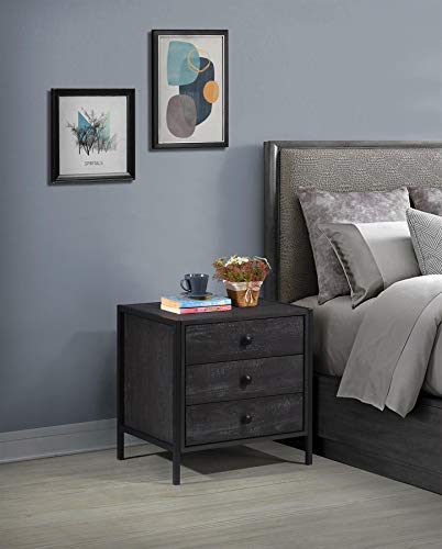 Homeke Bedroom Furniture Industrial Bedside Table Nightstand Chest of Drawers Storage Organiser Unit with Metal Frame UK (bedside table x1 piece)
