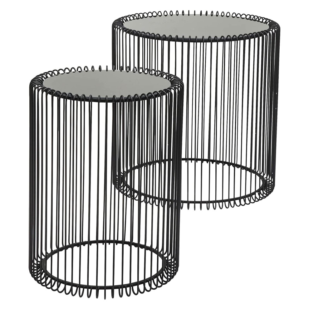 UK ONLINE DEALS Decor Glamour Set of 2 Round End Tables | Wired Cage Living Room & Coffee Table | Bedside Glass Mirrored Top Caged Side Indoor Furniture | Nest Besides Table (Black)