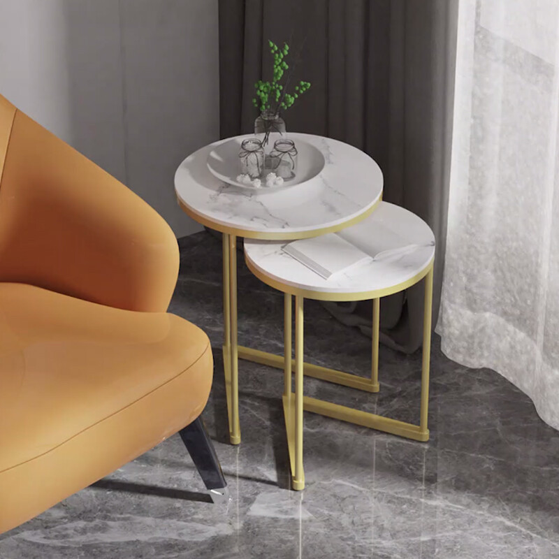 Furniturebox UK Novara Glass White Marble Effect Round Side Table Bedside Table - Shiny Gold Metal Legs Stylish Nested Starburst Design - Modern Living Room Bedroom Furniture Contemporary Homes