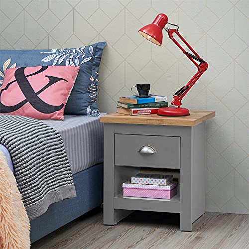 Timber Art Design UK Alford Bedside Lamp Table with Drawer Modern Bedroom Furniture Storage Cabinet Unit for Living Room/Office in Sonoma Oak Wood Effect & Grey, W40cm x H49.6xm x D36cm