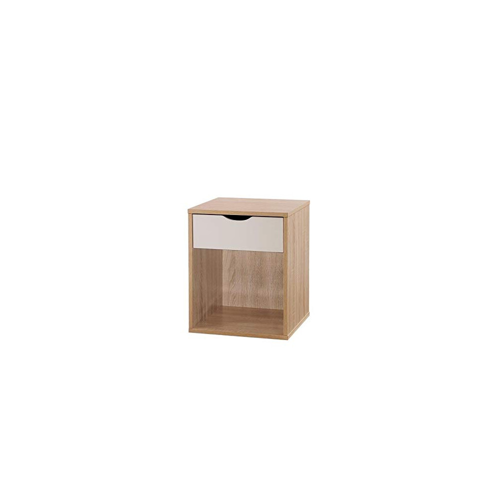 Timber Art Design UK Bedside Cabinet with 1 Drawer Chest Cabinet Storage Unit Nightstand Table Modern Furniture for Living Room, Bedroom, Hallway, Sonoma Oak & White, L39cm x W40cm x H48cm