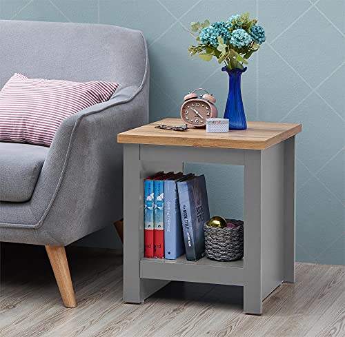 Timber Art Design UK Lisbon Bedside Lamp Table with 1 Open Shelf Modern Bedroom Furniture Storage Cabinet Unit for Living Room, Hallway, Office, Grey - H 50cm x W 40cm x D 43cm