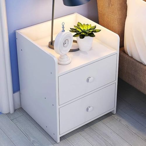 LONENESSL Bedside Tables with 2 Drawers, 2 Drawer Wooden Bedroom Bedside Cabinet, Storage Nightstand Side Table, Soft corners, Three sided guardrail raised, for Living Room, Bedroom, Study,White