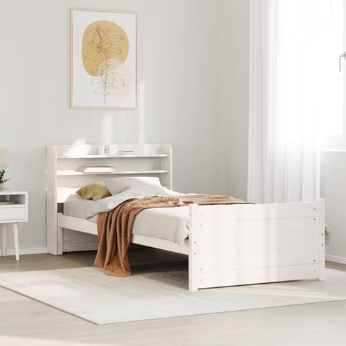Gecheer Bed Frame with Headboard without Mattress White 75x190 cm Small Single bedstead Model3305980