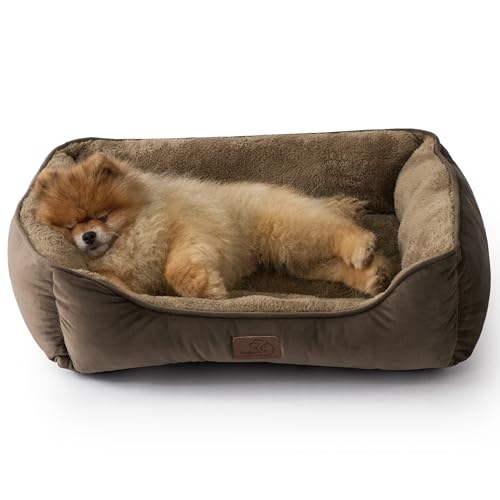 Bedsure Dog Bed Medium Washable - Rectangle Small Dog Bed with Anti-Slip Bottom, Anti-Anxiety Pet Basket for Puppy and Large Cat, 63.5x53 cm, Brown