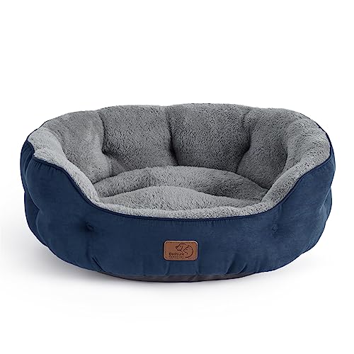 Bedsure Dog Bed for Small Dogs - 63x53x20cm Round Washable Large Cat Beds, Pet Bed for Small Dog and Puppy with Slip-Resistant Bottom and Reversible Cushion, Navy
