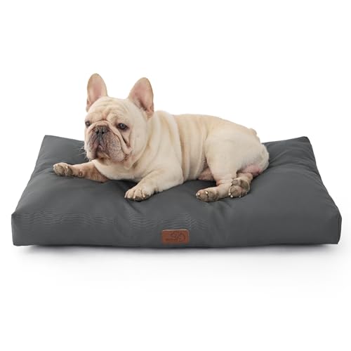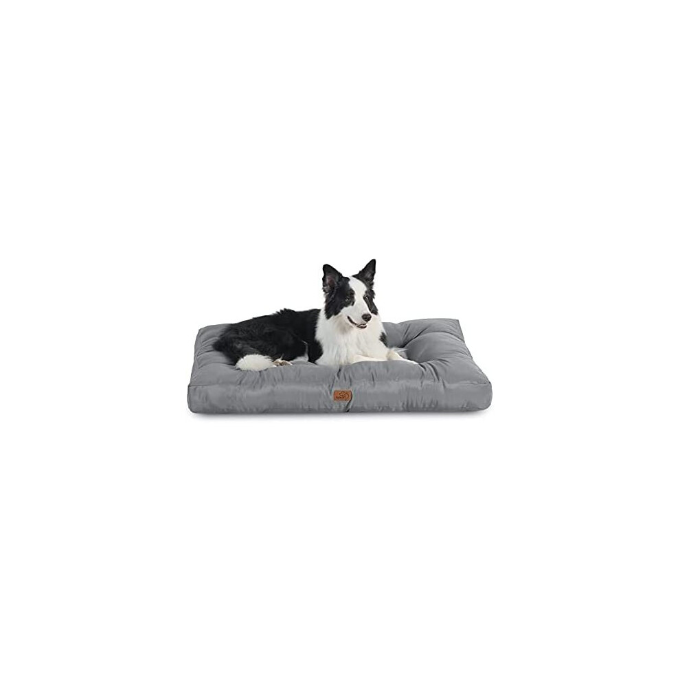 Bedsure Waterproof Large Dog Bed - L 89x56cm Washable Dog Mattress, Outdoor Dog Crate Mat with Oxford Fabric Removable Cover, Water Resistant Anti-slip Flat Pet Pillow Bed for Crate Mat, Grey