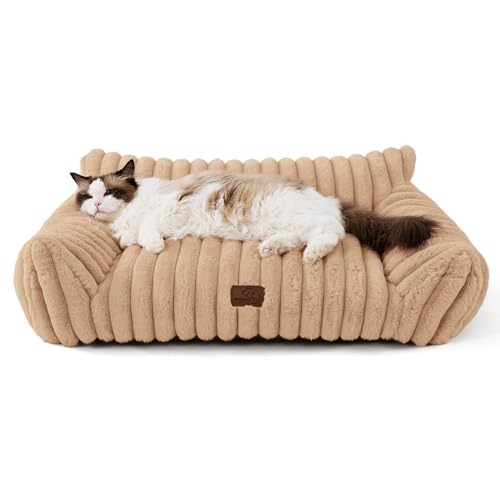 Bedsure Washable Dog Sofa Bed - 76x51x25cm Large Cat Beds for Indoor Cats, Dog Couch for Medium Dogs Cat Sofa Couch with Removable Cover, Camel