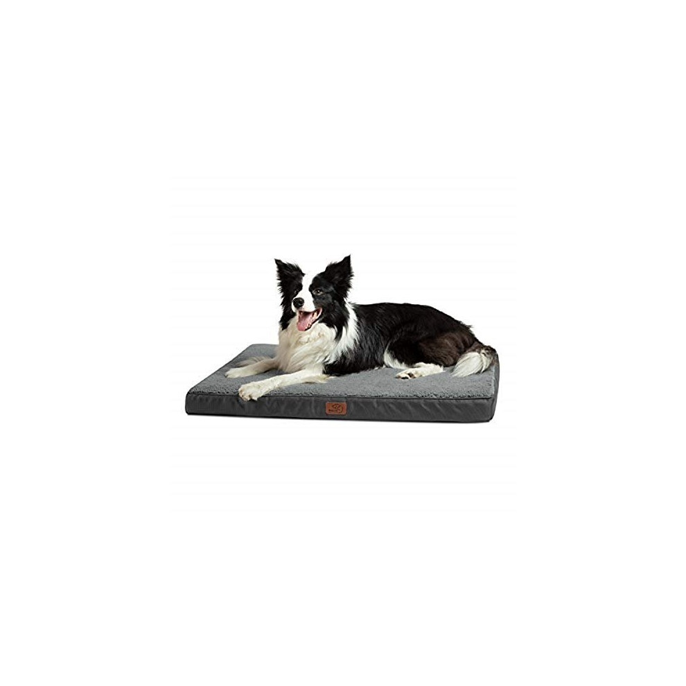 Bedsure Large Dog Bed Washable - Orthopedic Dog Pillow and Mattress Mat for Dog Crate with Removable Plush Sherpa Cover, Grey, 89x56x7.6cm
