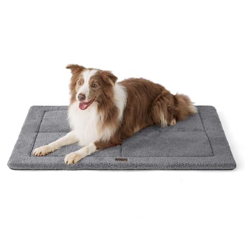 Bedsure Large Dog Bed Mat- Washable Dog Crate Mat with Anti Slip bottom - Soft Comfortable Dog Mattress Pad Cushion for Kennel, Durable Pet Bed Mat for Large Dogs- XL 104x69 cm, Dark Grey
