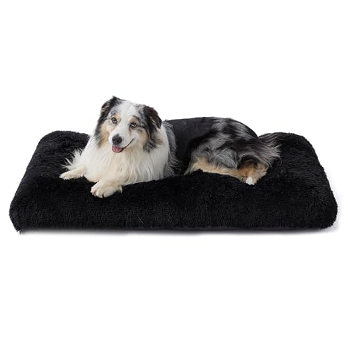 Bedsure Dog Crate Bed Extra Large - XXL Fluffy Dog Crate Mattress Washable with Anti Slip Bottom, XL Warm Pillow Cushion for Large Pets, Black, 121x76cm