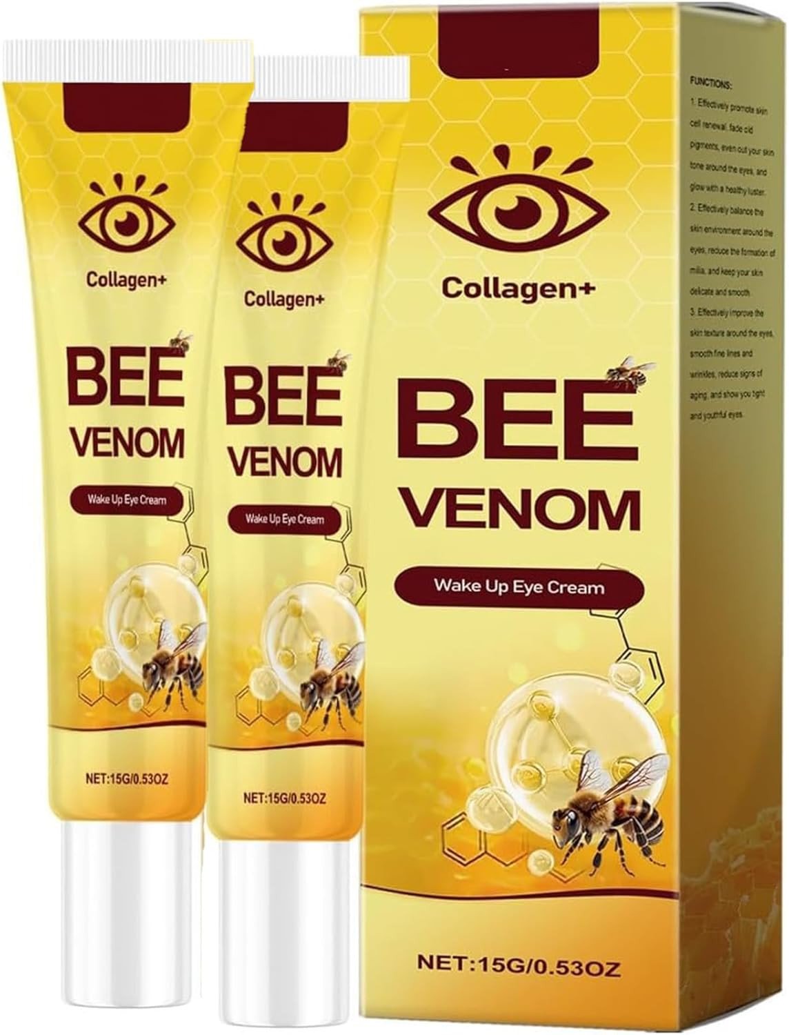 2Pcs Bee Venom Eye Cream,Collagen Bee Venom Wake up Eye Cream,For All Skin Types