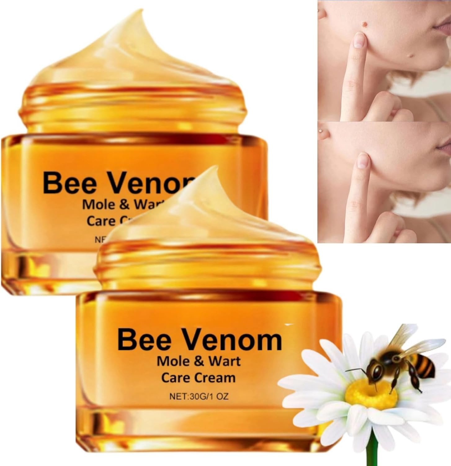 2PCS Bee Venom Cream, Bee Venom Cream for Skin Tag, 2024 New Bee Venom Mole and Wart Cream, Bee Venom Wart and Tag Remover, Body Moisturiser, Easy Application & No Irritation-200g