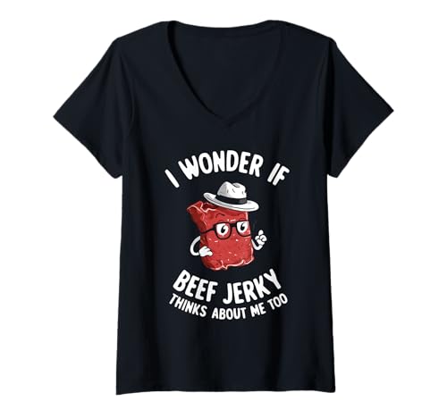 Women's I Wonder If Beef Jerky Thinks About Me Too Funny V-Neck T-Shirt