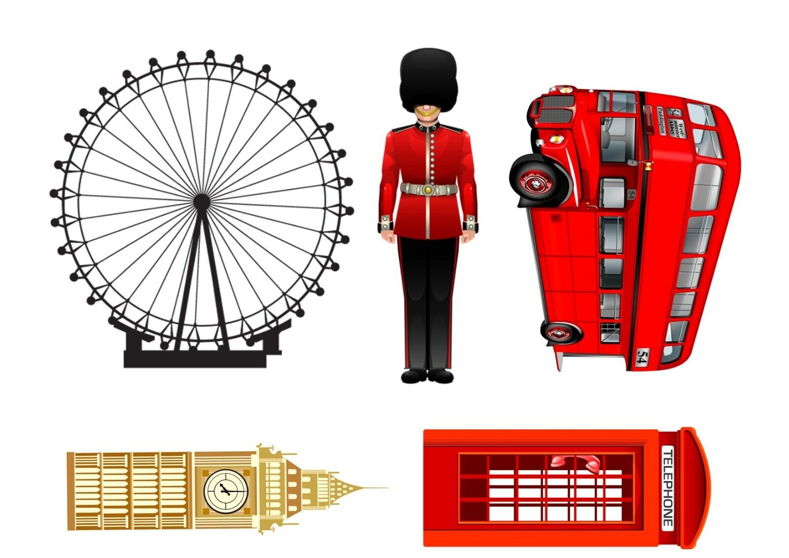 London Theme Edible Cake Icing Toppers Beefeater Bus Phone box 5" tall