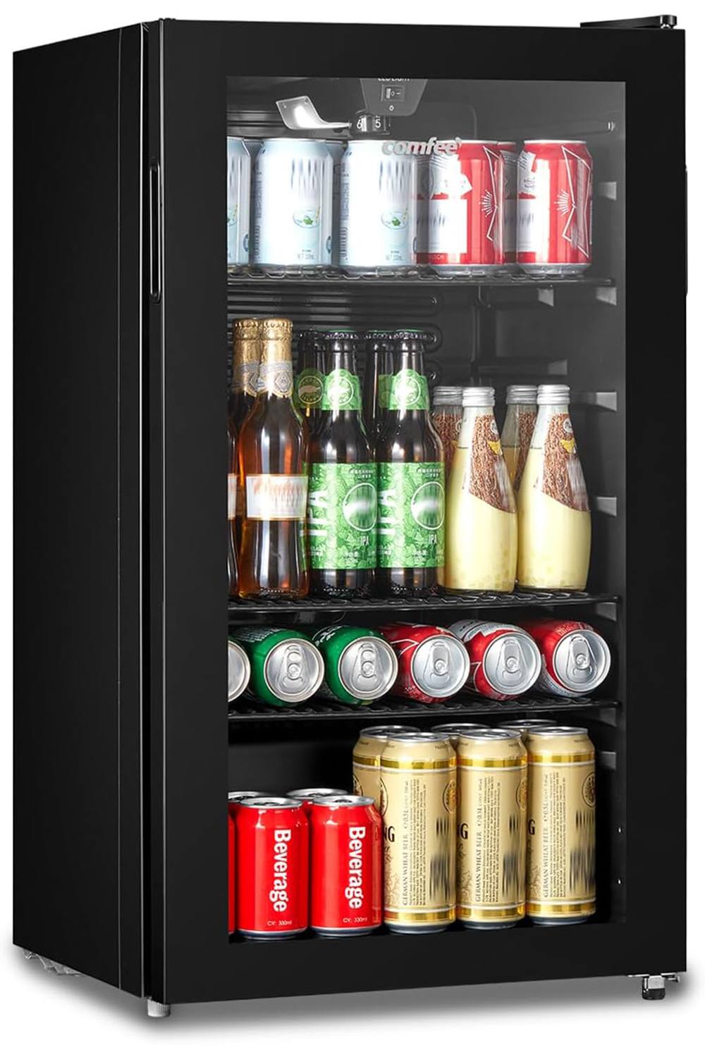 Living and Home 93L Under Counter 115-Can Drinks Cooler Beer Fridge (2℃ to 15℃) Beverage Refrigerator with Removable Shelves, LED, Low Noise in Black