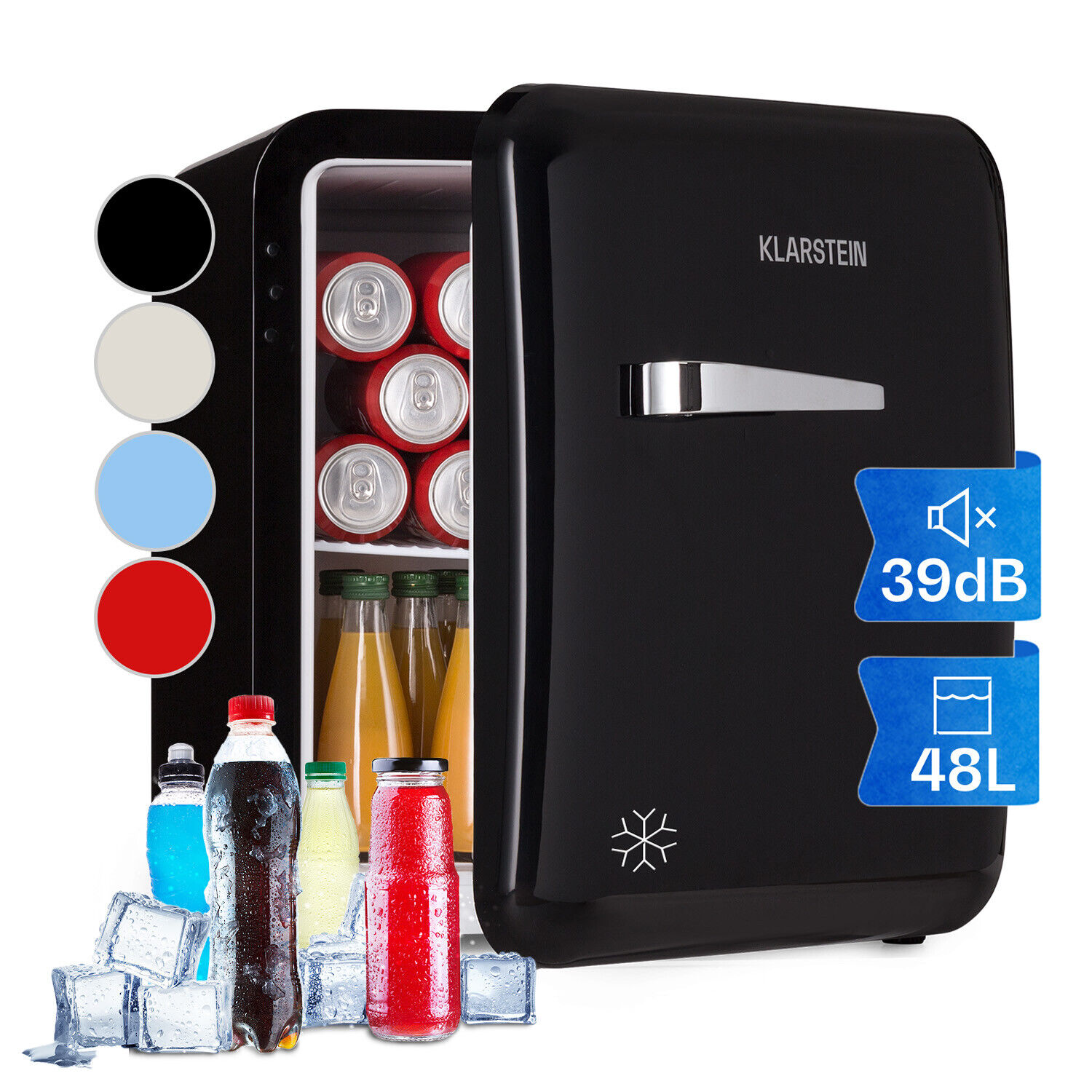 KLARSTEIN Mini Fridge for Bedrooms, Food, Drinks, Beer & Skincare Fridge Cooler, Vintage Design Drinks Fridges, 48L Table Top Fridges w/Adjustable Shelves, Quiet & Small For Home and Office