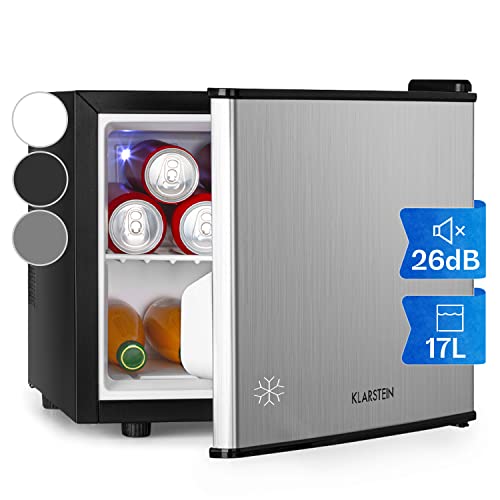 Klarstein Mini Fridge for Bedrooms, Food, Drinks, Skincare, Beverages & Beer Fridge Cooler, Manual Defrost, 3 Cooling Levels, Quiet & Small Fridge for Home, Office, Bar, Caravans, Camping, 0-15°C, 17L