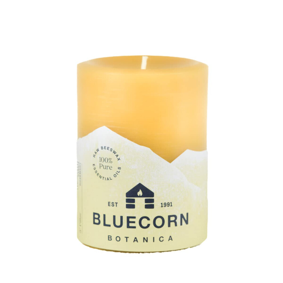 Bluecorn Botanica Beeswax Pillar Candle Scented with Cedarwood Nutmeg & Lavender Essential Oils - 3"""" x 4""""