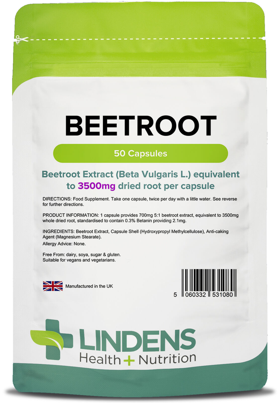 Lindens Super Strength Beetroot Extract 3500mg 50 Capsules Dietary Nitrates Beet