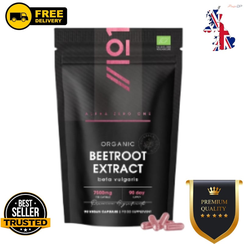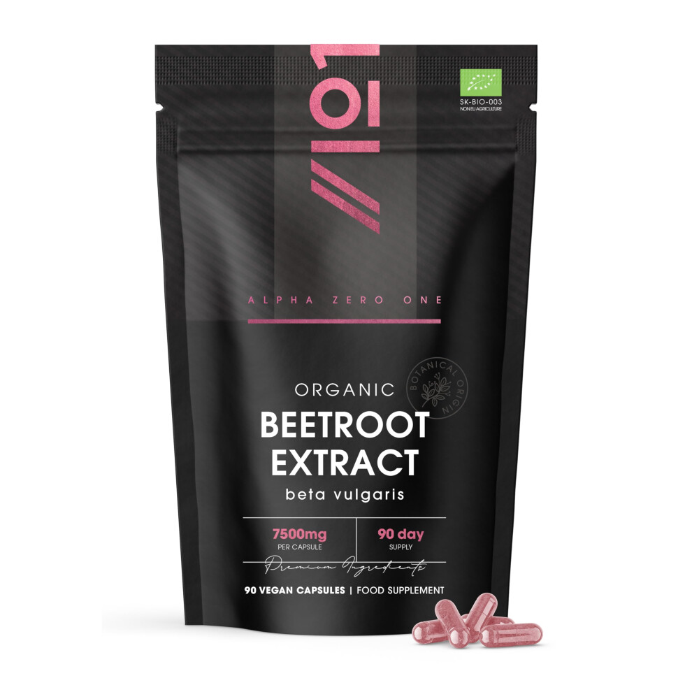 Organic Beetroot Extract Capsules 7500mg - High Strength Beetroot Supplement - 90 Vegan Capsules (3 Months Supply) Resealable and Recyclable Pouch by Alpha01