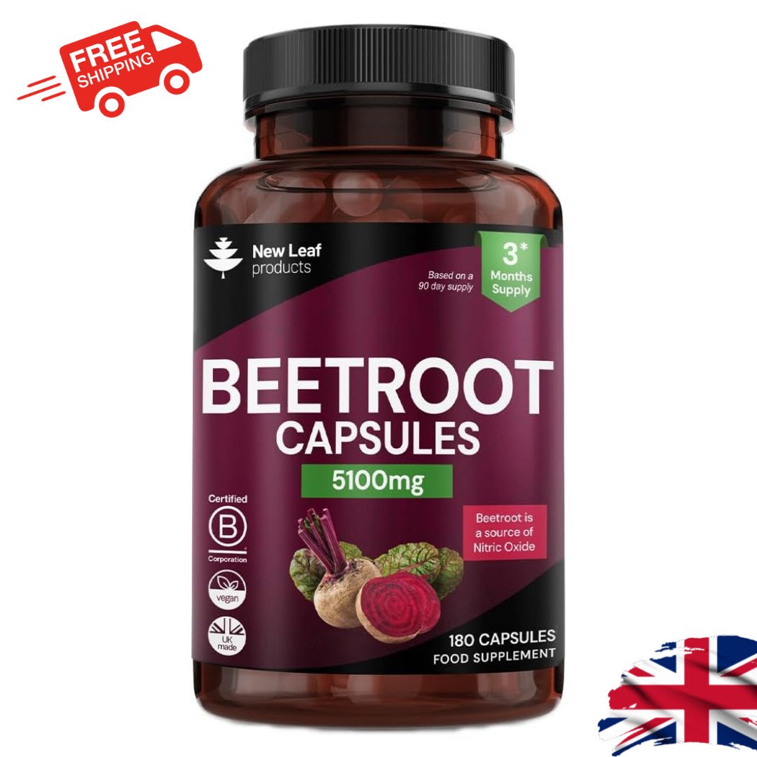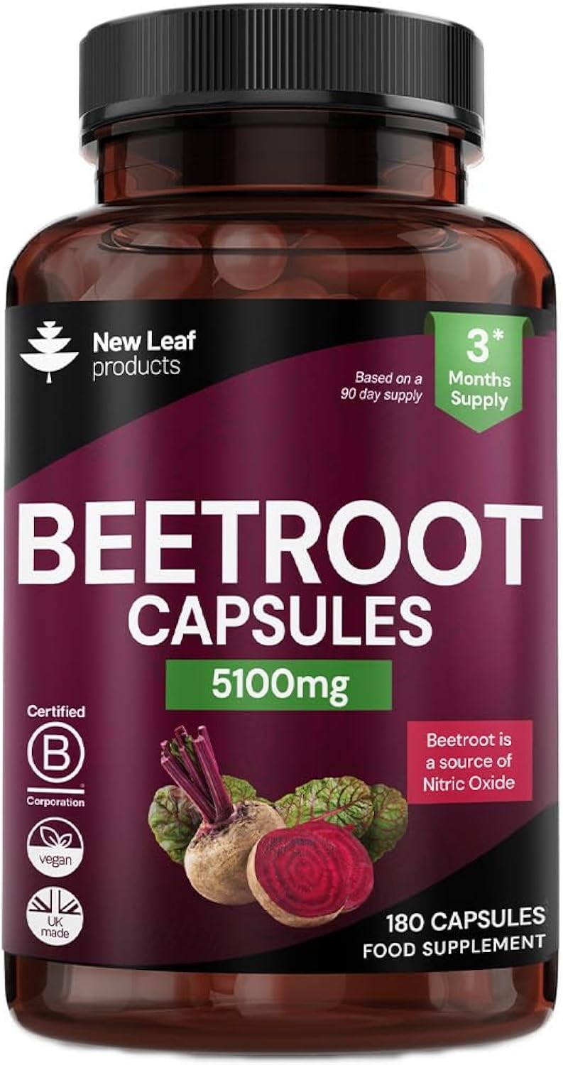 Beetroot Capsules 5100mg - High Strength Beetroot Supplement 180 Vegan Capsules - Nitric Oxide - Enriched with Black Pepper Made in The UK by New Leaf