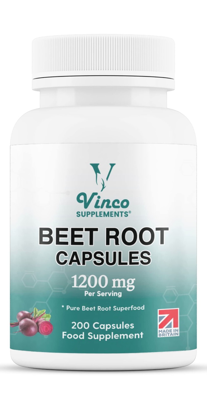 Vinco Beetroot Capsules - 1200mg Organic BeetRoot Powder Per Serving - UK-Made,