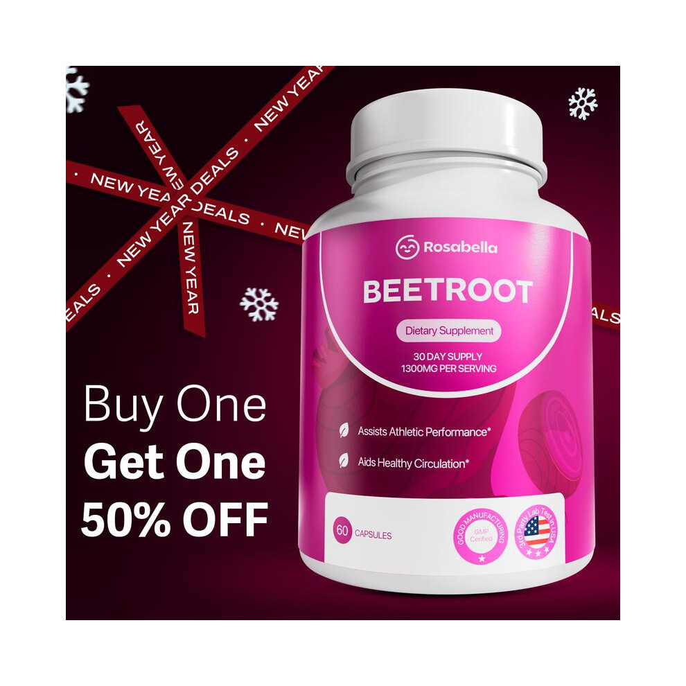 Rosabella Organic Beetroot Capsules (1300mg) for Blood Flow & Heart Health