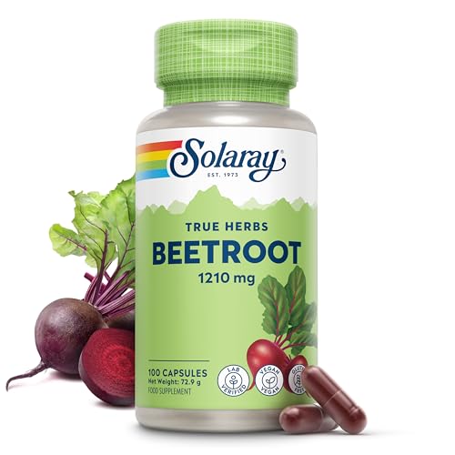 Solaray - Beetroot Capsules - 100 Vegan Capsules - Vitamins & Mineral Rich - Natural Nitric Oxide Booster - Highly Bioavailable Superfood - Beetroot Powder Supplement - Lab Verified - Made in The USA