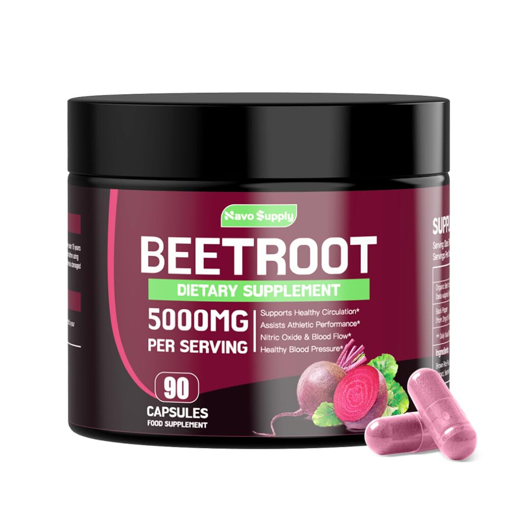 NavoSupply-Beetroot Capsules 5000mg High Strength Formula, 90 Vegan Capsules | Natural Nitric Oxide Booster, Enriched with Black Pepper for
