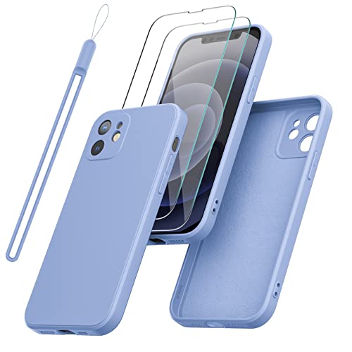 Giolus Case for iPhone 12 with 2 Pack Screen Protector with Wrist Strap, Premium Liquid Silicone Soft TPU Case Anti-Scratch Shockproof Full Body Phone Cover-Light Purple