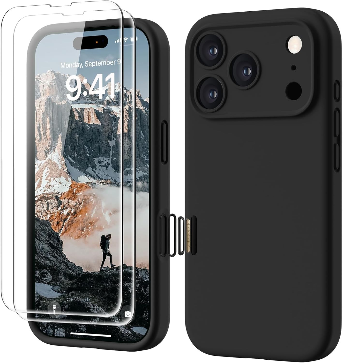 GOODVISH 4 IN 1 for iPhone 17 Pro Case, Premium Liquid Silicone with [2X HD Screen Protector + Camera Control Capture Button], Full Lens Protection Cover Soft Microfiber Lining Phone Case, Black