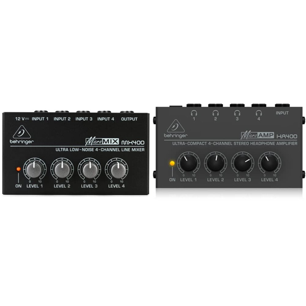 Behringer MICROMIX MX400 Ultra Low-Noise 4-Channel Line Mixer, Black & MICROAMP HA400 Ultra-Compact 4 Channel Stereo Headphone Amplifier