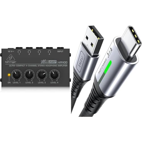 Behringer MICROAMP HA400 Ultra-Compact 4 Channel Stereo Headphone Amplifier & INIU USB C Charger Cable 2m 3.1A Type C Cable Fast Charging, Braided USB A to USB-C Phone Charger
