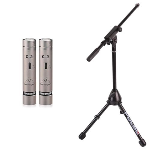 Behringer C-2 2 Matched Studio Condenser Microphones & Pulse PLS00042 Stand for Microphone, Black