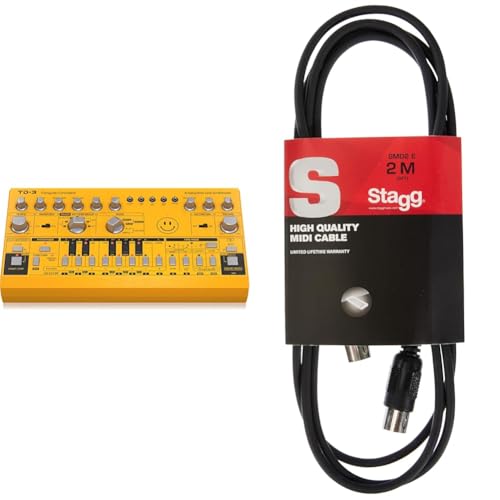 Behringer TD-3-AM Analog Bass Line Synthesizer with VCO, VCF, 16-Step Sequencer, Distortion Effects and 16-Voice Poly Chain & Stagg SMD2 E 2 m 5 Pin DIN Male Connector MIDI Cable