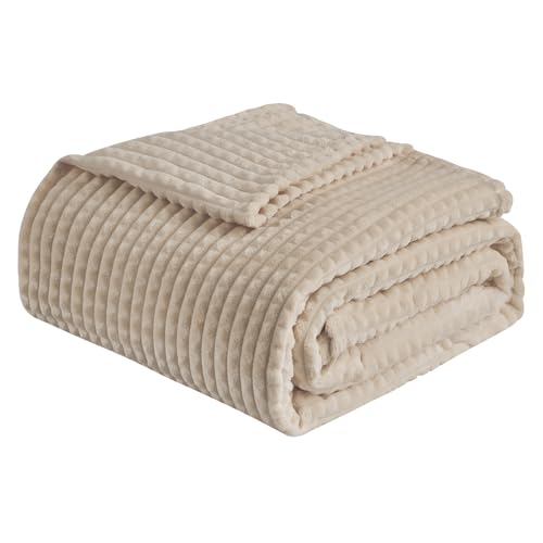 RUIKASI Fleece Throw Blanket for Sofa - Single Fluffy Beige Throws for Sofas Large, Soft Warm Blanket Throw for Couch, Luxury Decorative Ribbed Bed Blanket 130x150cm