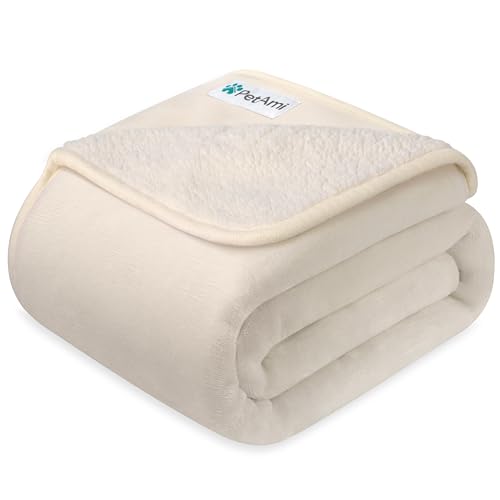 PetAmi Waterproof Dog Blanket Sherpa Fleece, Waterproof Pet Blanket for Medium Large Dogs, Reversible Cat Throw Bed Couch Sofa Furniture Protector, Soft Plush Microfiber (Large 40x60, Beige)