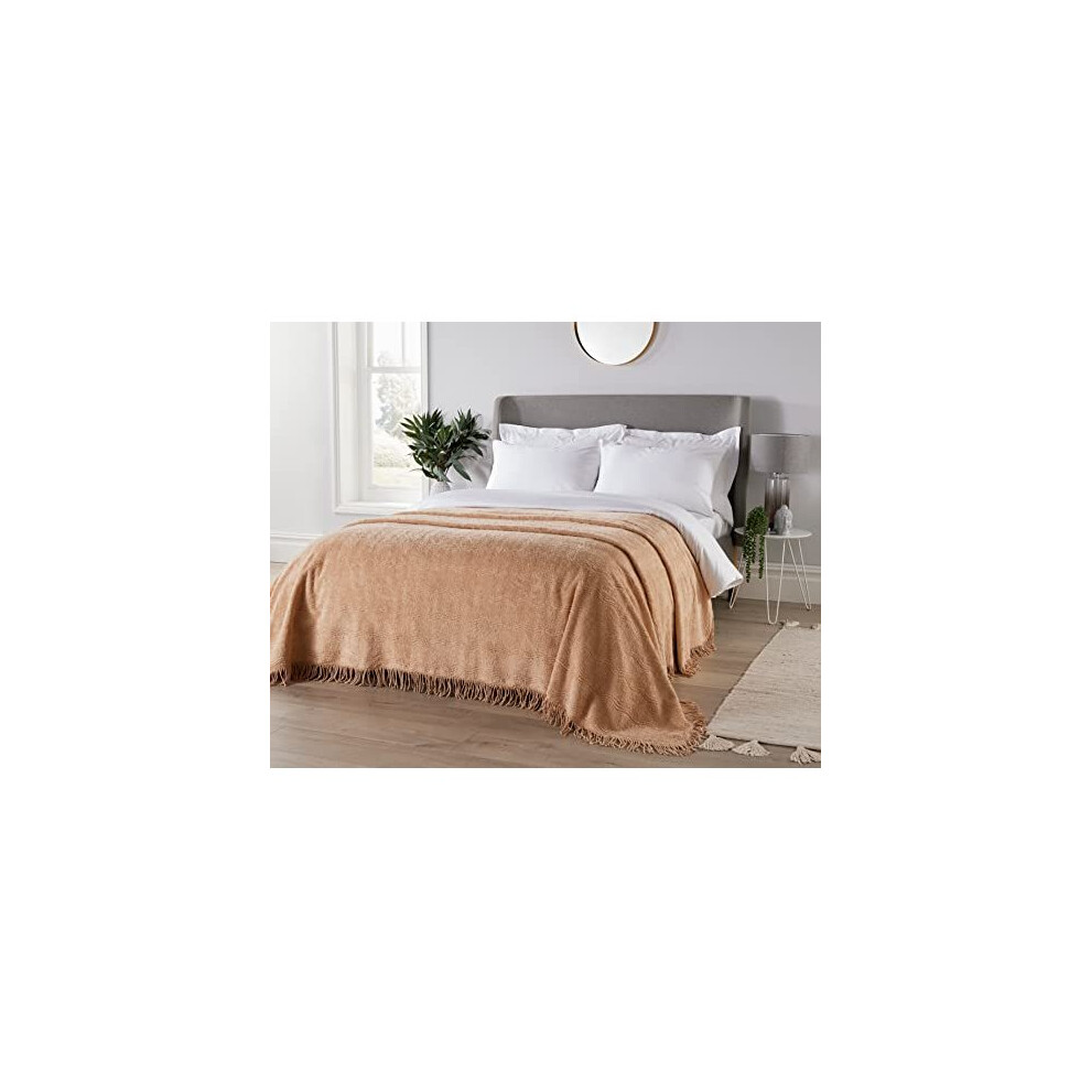 EHC Throw Blanket, Throws for Sofas armchairs Sofa Settee Couch Reversible Bed Cover Over Blanket, Single 127 x 152 cm, Beige