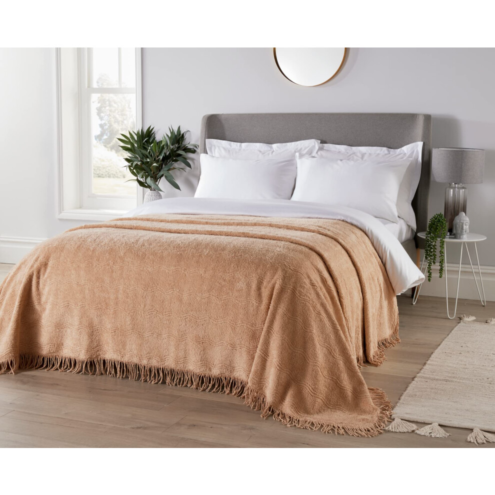 Diana Cowpe Candlewick Geneva Bedspread BEIGE Bed Throw/Blanket | Soft Traditional Bedspread Cotton Chenille & Fringed Edges with Wave Design | DOUBLE