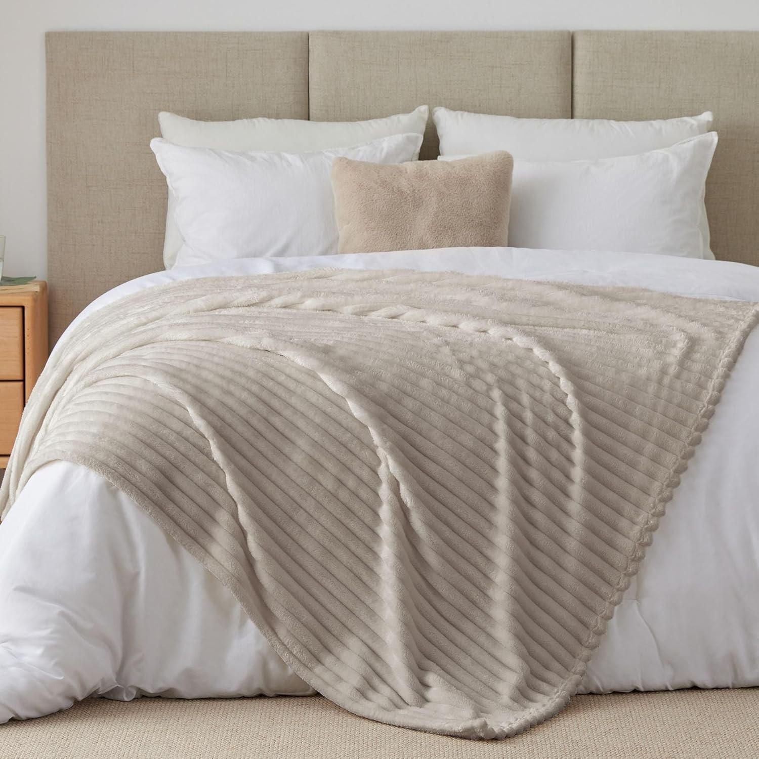BEDELITE Fluffy Fleece Queen Size Blanket - Linen Beige Bed Throw Soft Cosy War