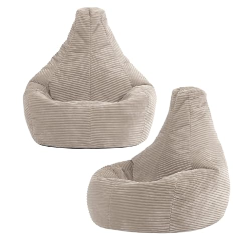icon Dalton Kids Bean Bag, Beige, 2 Pack, Cord Kids Bean Bag Chair with Filling Included for Girls and Boys, Childrens Chair, Beanbags for Children, Playroom Décor, Bedroom Accessories