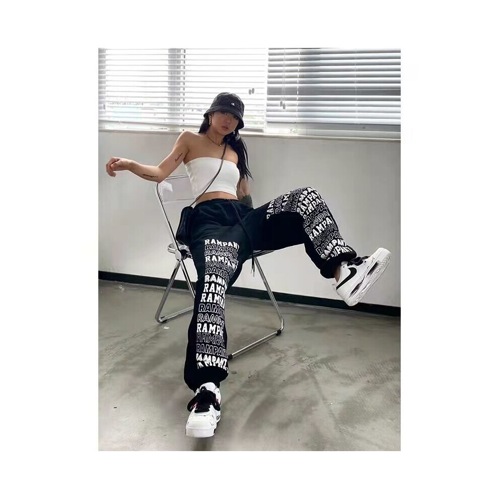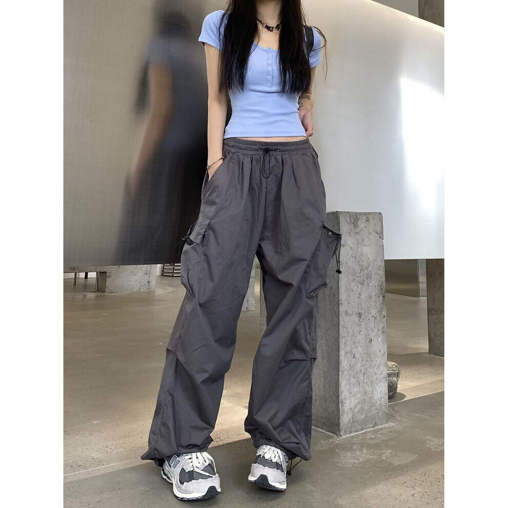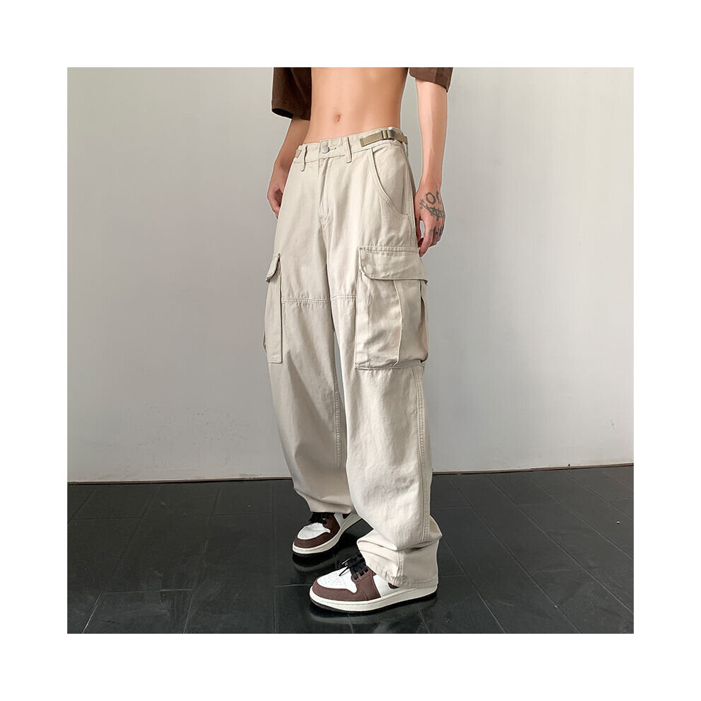(1 Beige-L) Cargo Pants Women High Street Harajuku Retro Wide-legged Woman Pants Loose Casual Straight Slim Sweatpants Women Bottoms Pants