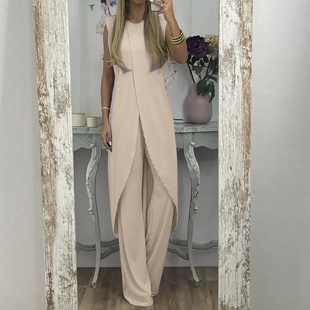 Women's Beige Polyester Cargo Pants & Wide Leg Blouse Set, 7 Colors, Loose Fit, Summer Slit Design â Compatible with XL